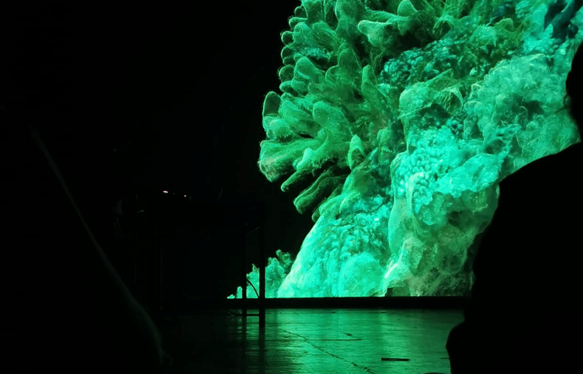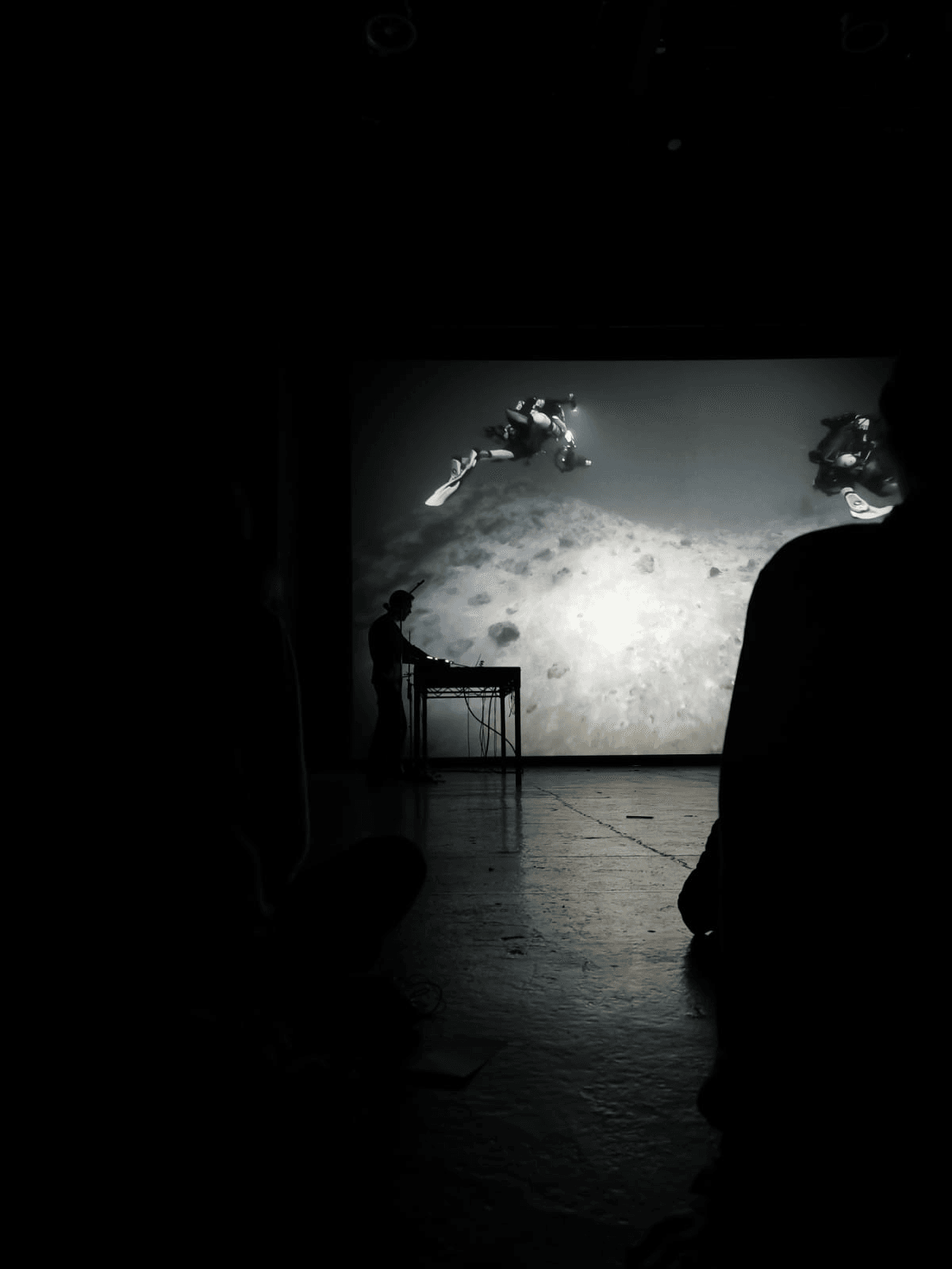 The resulting material has been used to create a deep and immersive combination of film and digital creation. Part exploration of the endangered natural heritage of our coral reefs, part poetic journey to the depths, the performance is scored live using both natural and electronic sources. It also exists as a recorded installation version.